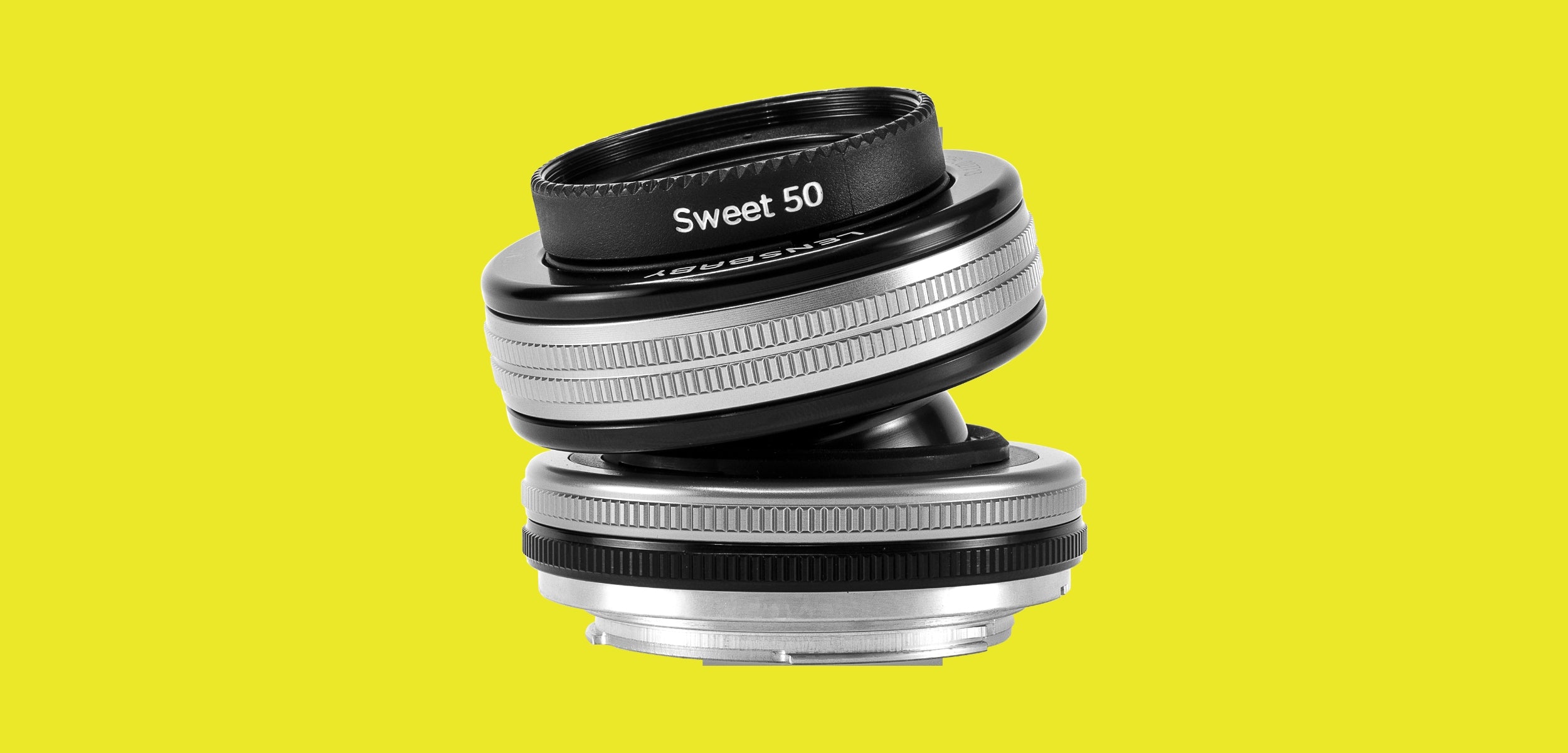 The Sweet 50 optic, a 50mm lens, creates a sweet spot of focus surrounded by gradual blur, characteristic of Lensbaby's trademark look, perfect for emphasizing subjects.
